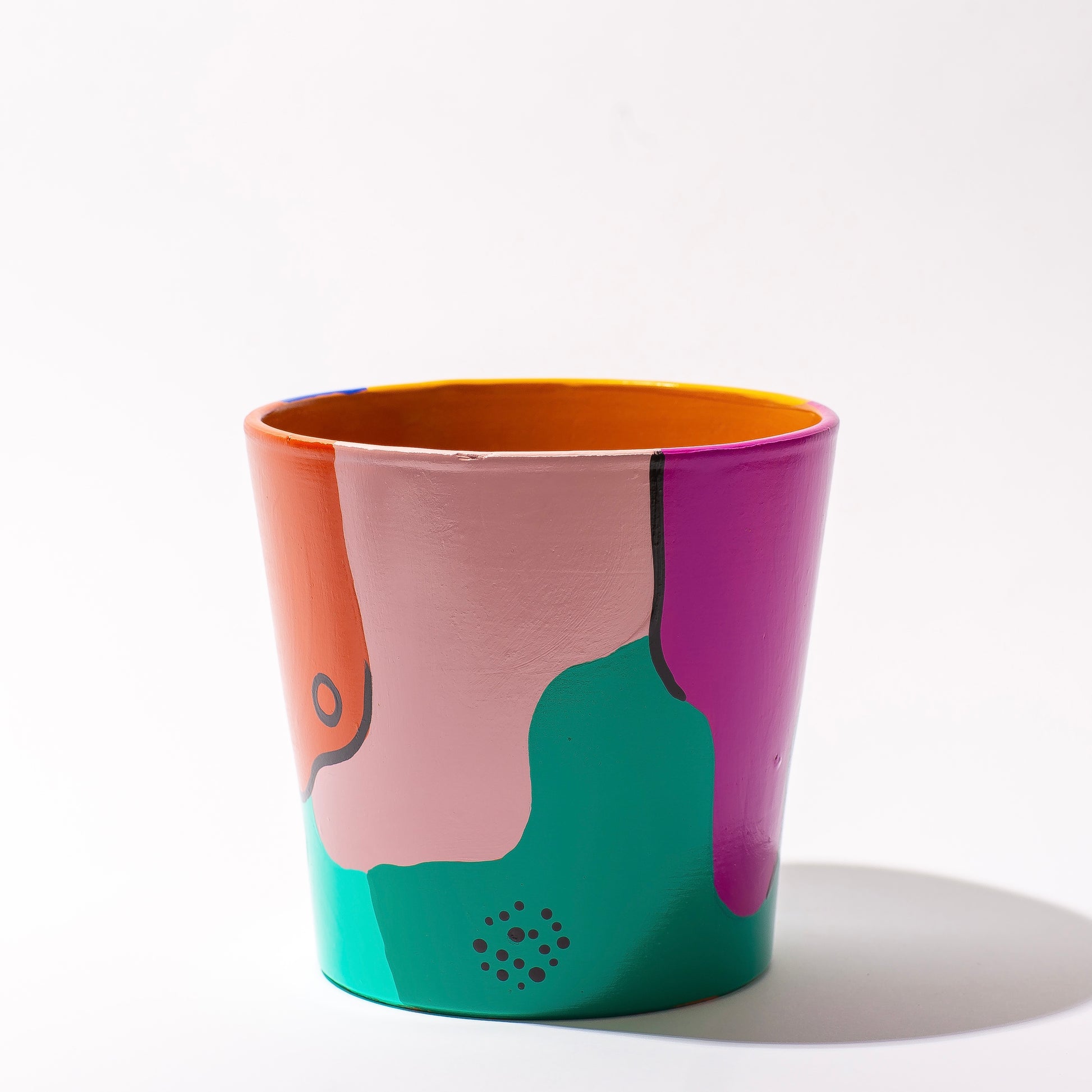 Each design is uniquely crafted showcasing patterns that add overall aesthetic. Since this product is handprinted, there will be slight differences in shape and color from pot to pot that adds to the charm of its' handmade quality.