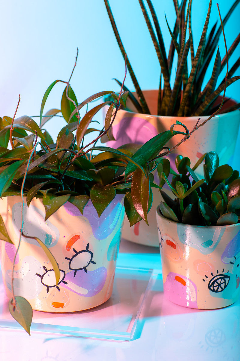 Each design is uniquely crafted showcasing patterns that add overall aesthetic. Since this product is handprinted, there will be slight differences in shape and color from pot to pot that adds to the charm of its' handmade quality.