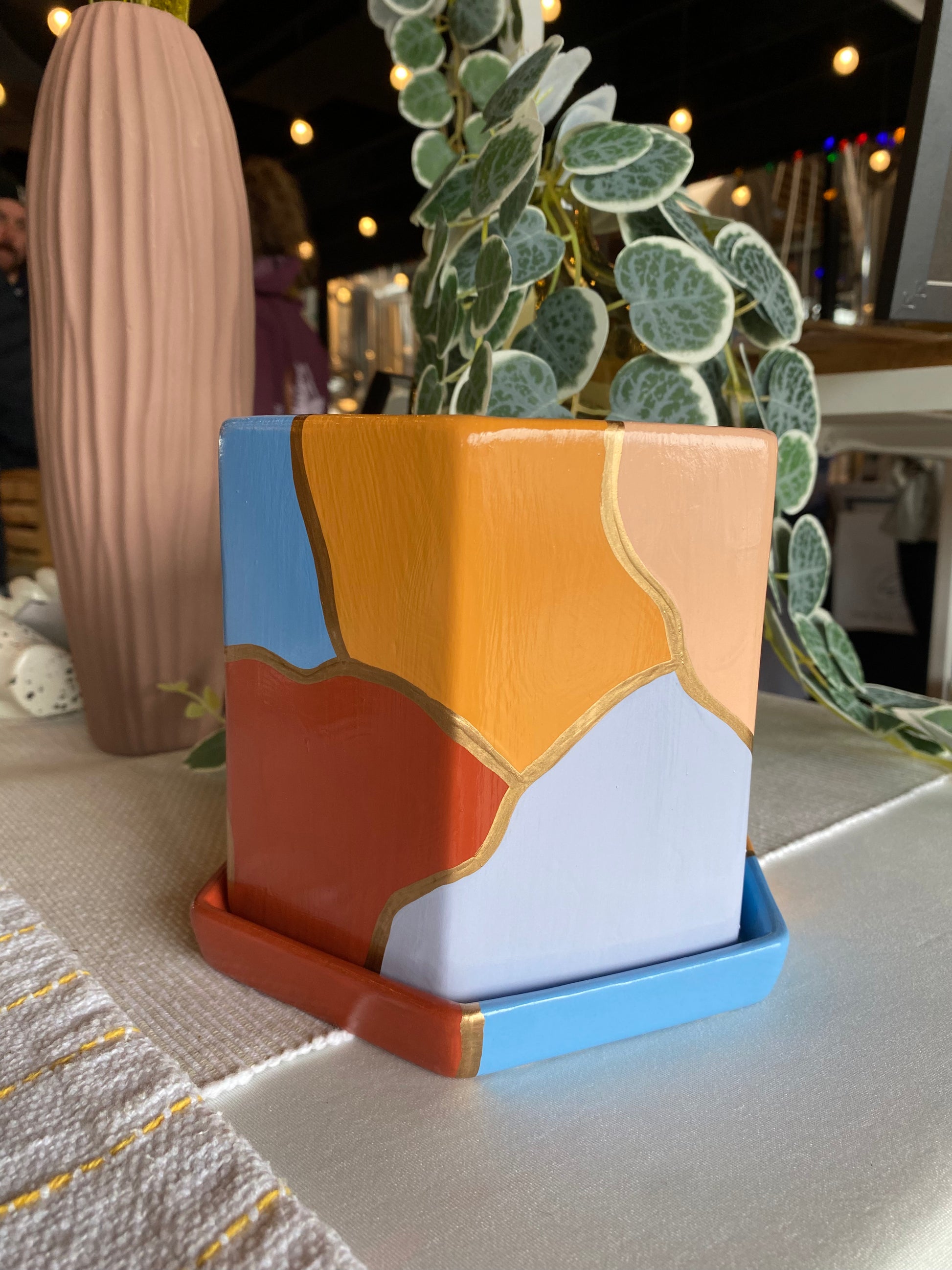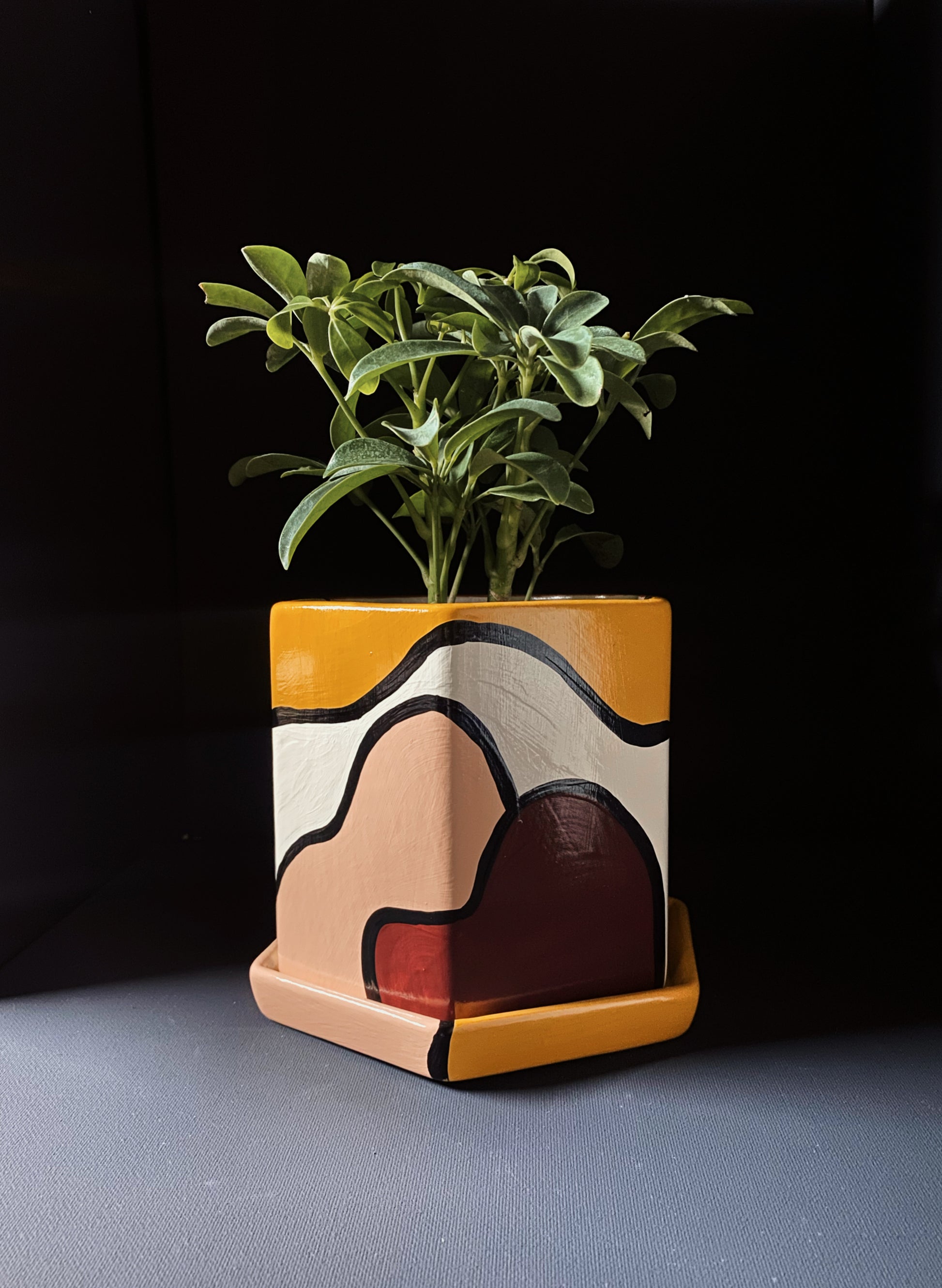 Dimensions: Planter: 5 ⅞" L x 5 ⅜" W x 5 ⅛" H Tray: 6 ⅞" L x 4 ⅞" W x ¾" H