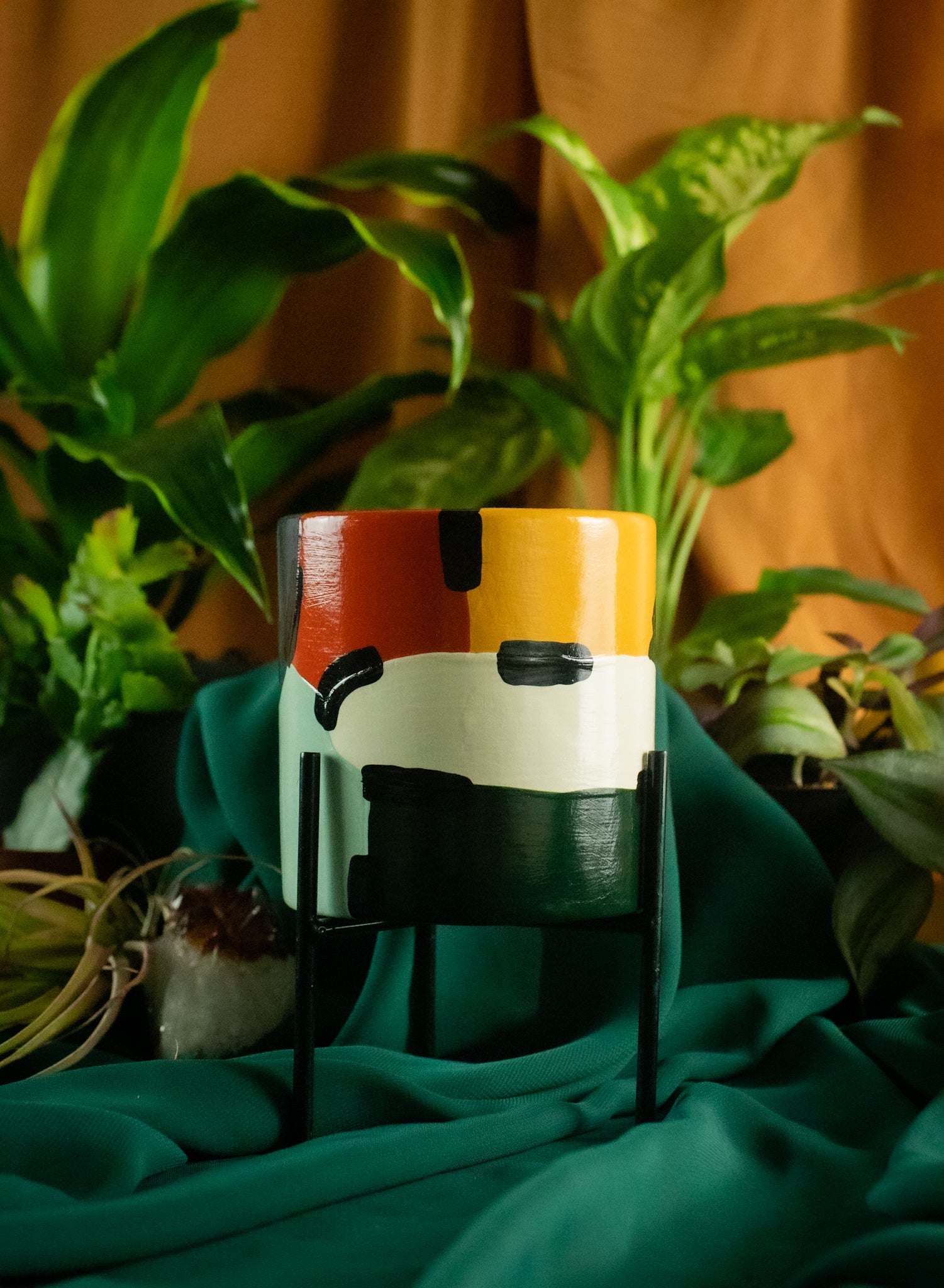 Enhance your space with our Cylinder Shaped Planter with Black Metal Stand and bring a touch of modern beauty to your surroundings.